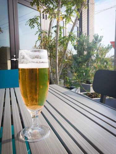解放感溢れるテラス席で飲むビールは格別に美味しいですよ!