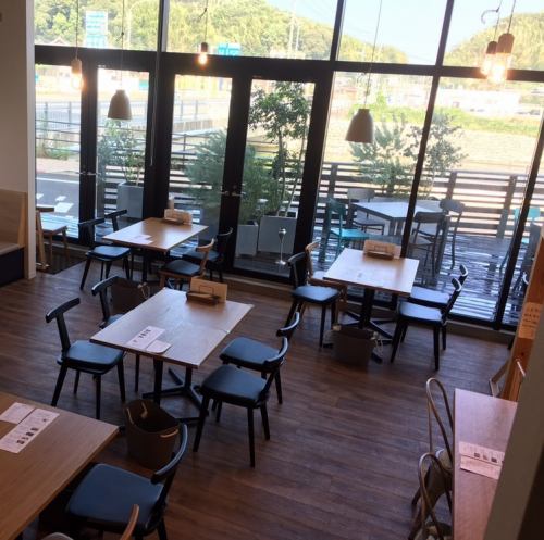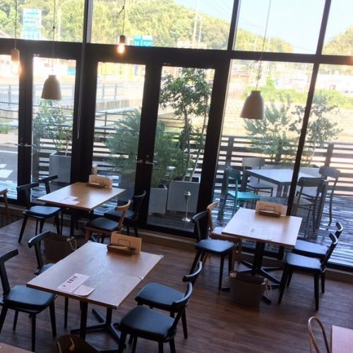 大きな窓で開放感抜群!お外を眺めながらゆっくりとランチやカフェメニューをお楽しみいただけます。