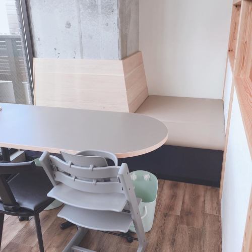 お子様を寝かせられるソファ席ございます。お子様の椅子もございますが、0歳のお子様も安心してお連れ頂けます。こちらのお席は人気なので、ご予約頂けると確実です★